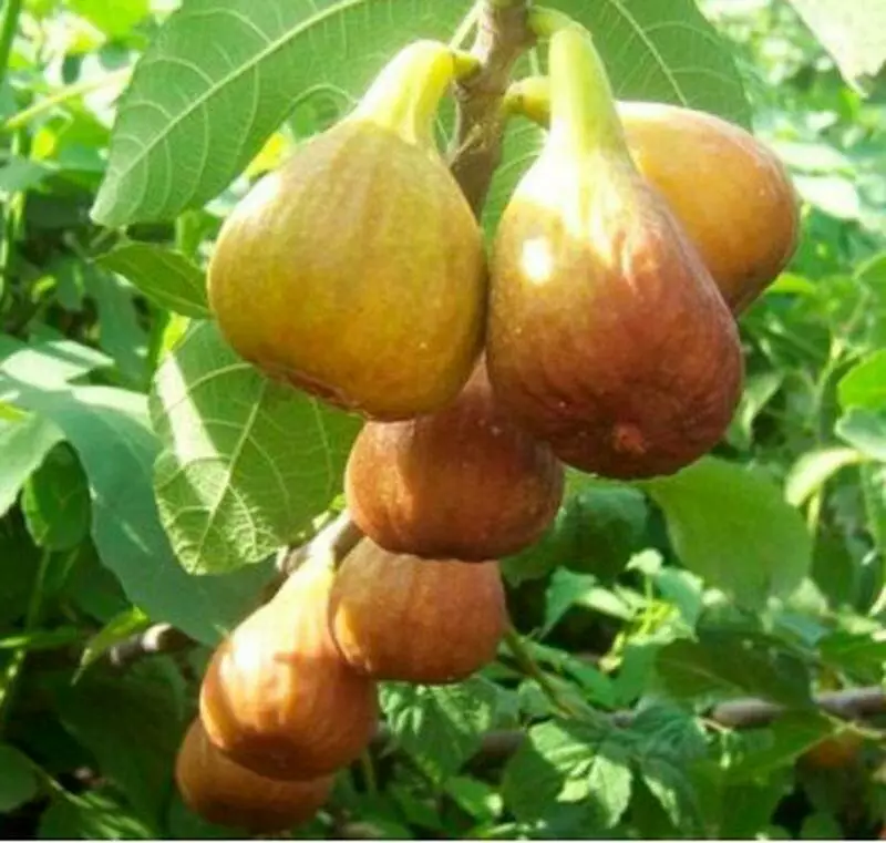 Другі плоди менші. Важать 120-140 м Фіги світло-зелені, трохи жовтуваті, з білими плямами. М'якоть рожева без насіння.