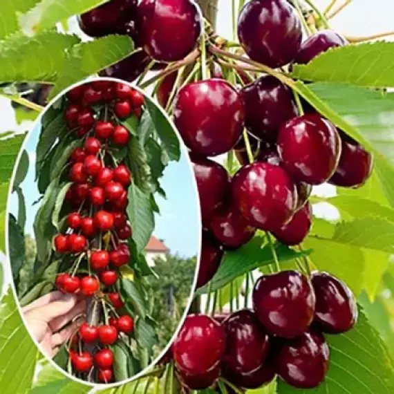 Колоновидна Вишня "Королева" - саджанці цього карликового сорту виростають від 1.5 до 2 м., висотою. Такі дерева можна вирощувати в контейнерах або вазонах.