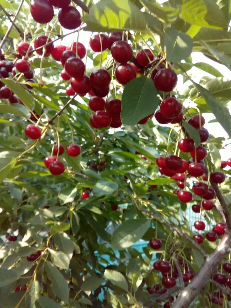 Опис сорту: ранній вишнево-черешневий гібрид Слов’янка, прищеплений на підщепі Антипко (плодоношення починає вже на 2-3 рік після посадки саджанцю) від звичайної вишні відрізняється більш солодким смаком темно-червоних плодів великого розміру, а від черешні морозостійкістю і посухостійкістю (див. фото).